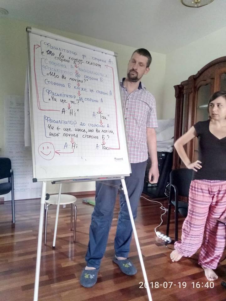 «Щоби бути в змозі іти до інших людей у суспільстві та допомагати їм мирно врегулювати деструктивні конфлікти, ми спершу маємо звертатися до власних конфліктів і вирішувати їх, а також працювати на випередження» — підкреслив у вітальному слові Карл Плеснер, керівник навчальної програми Проекту, партнер і головний тренер Школи ІП.
