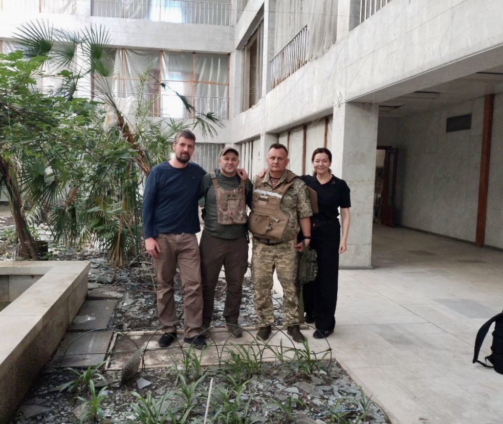 На фото, зліва направо: Карл Плеснер, співзасновник ГО "Український центр 'Простір Гідності'"; Василь Чинчик, Начальник Торецької міської військової адміністрації Бахмутського району Донецької області; Руслан Біленко, Інженер Порозуміння, керівник комунальної служби Торецької міської військової адміністрації Бахмутського району Донецької області; Олена Ганцяк-Каськів, очільниця ГО "Український центр 'Простір Гідності'".