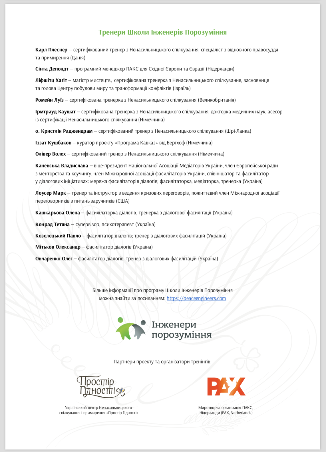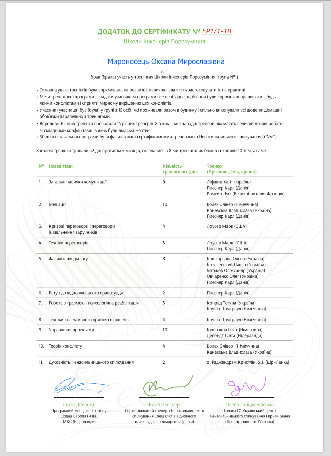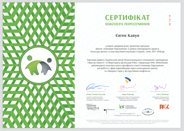 Приклад Кваліфікаційного сертифікату Інженера Порозуміння*